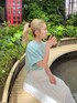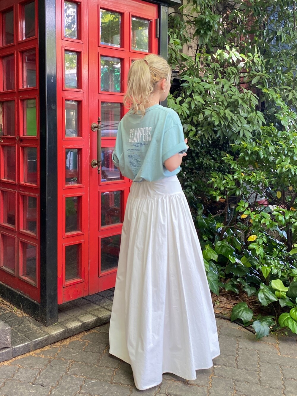 〈カフェデートコーデ☕️〉 【Tシャツ】・リサイクルコットン生地を使用したサスティナブルで、バックプリントがキャッチーでかわいいロゴTee!・ヒップが隠れる長さです🙆🏽♀️◎ 【スカート】・たっぷりとしたボリュームがかわいいマキシスカート。・155cmの私で、ギリギリの丈感になってかわいいです😍
