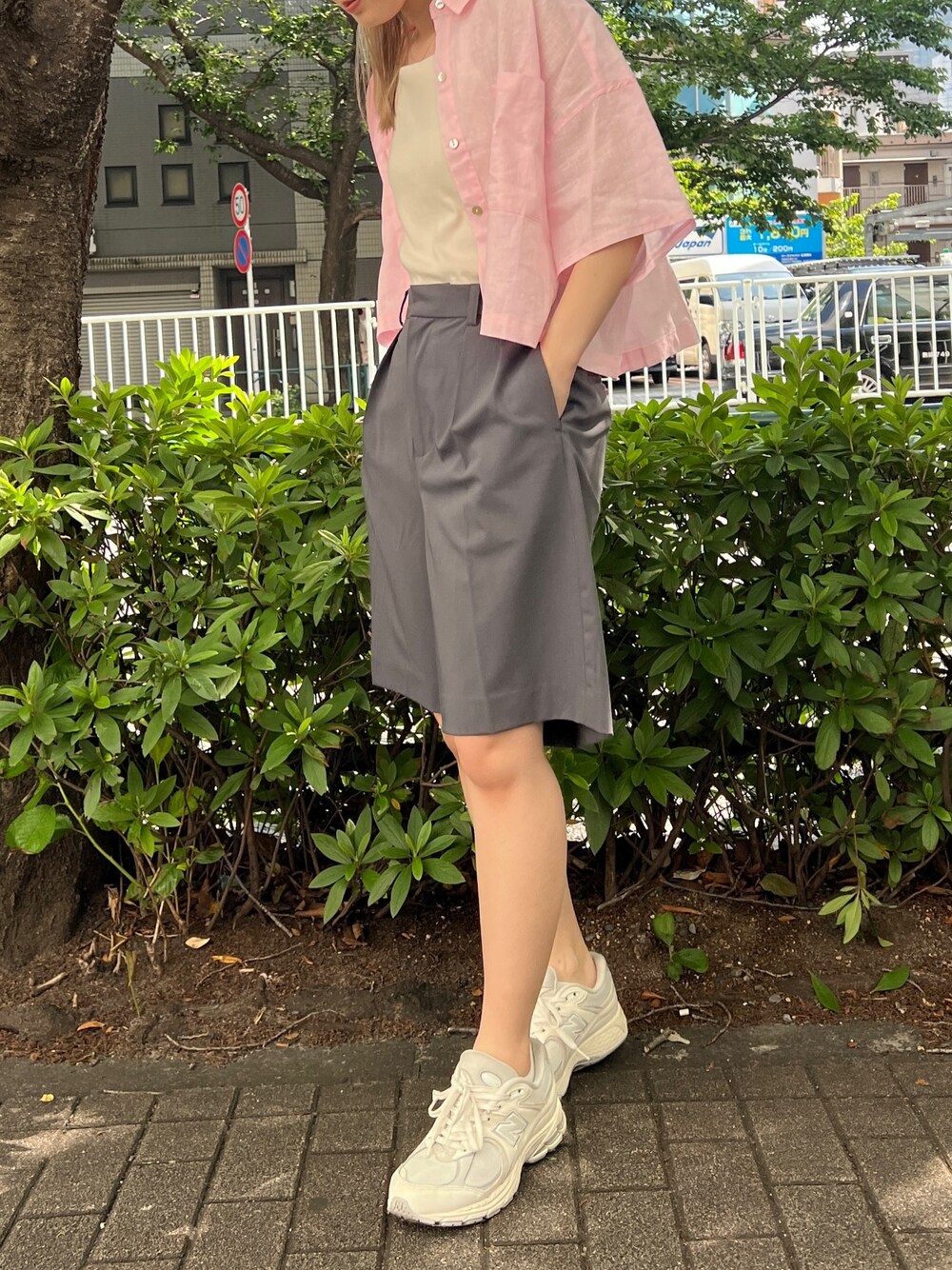 〈大人カジュアルコーデ〉 【パンツ】 ・ツータックで腰回りやヒップに少しゆとりがあります! ・155cmでSサイズ着用で、丁度膝上ぐらいです🧸