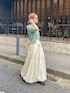 キレイめコーデ♡ バルーンのシルエットになっているスカートがかわいさ抜群🐥 ギャザーがラウンドに入っている為、トップスはどんな丈感でも、バランス◎