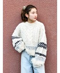 【ニット】チクチクしない素材で、春はキャミソールやタンクトップをインナーにしても◎袖の"たぽっ”としたシルエットがかわいい✨着るだけでおしゃれが叶う他にない一枚です♩