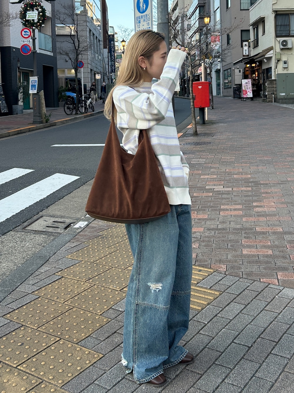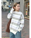 秋本すずか(Ungrid)のニット/セーター「ボーダースリットニット」を使ったコーディネート