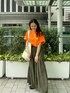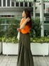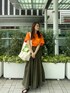 今季らしく目をひくビビットカラーを取り入れた綺麗めカジュアルコーデ!【Tシャツ】大人気のPIZZAtee!ヒップにかかるくらいのルーズなサイズ感で真夏でもゆったりとラフに着ていただけます◎袖元は2回ほど折るとより可愛いです!バックロゴで後ろ姿も可愛いのでこの夏活躍間違いなしですね! 【スカート】こちらも大人気なギャザースカート。中でもカーキはお洒落見え抜群です!ウエスト後ろ部分はゴム仕様になっており、ロング丈ですが軽量なので真夏でも履きやすいですよ◎ふんわり広がる形で足のラインは拾いませんが、ギャザーデザインなので縦に長く写るので脚長効果も期待できます! 【バッグ&ネックレス】プライベートにもお仕事用にも使いやすいトートバッグ。大容量なのでなんでも入ります!ネックレスはカジュアルめのトップスや胸元が開くようなトップスに付けてあげると女性らしさが一気に出て可愛いです。
