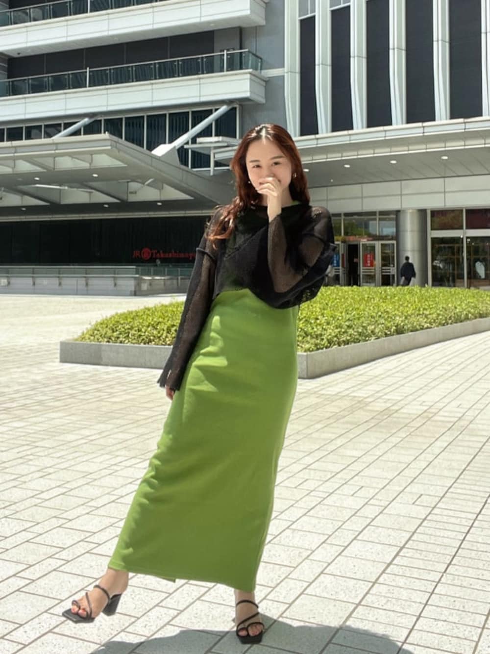 関 侑梨乃(Ungrid)のサンダル「スクエアトゥヒールサンダル」を使ったコーディネート