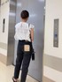 \リール動画 Thursday コーデ/ 【ブラウス】毎シーズンとても人気なインドメイドのフリルブラウス。透け感があるのでブラウスと同色のタンクトップやキャミソールなどのインナーを一緒に着ていただくのがおすすめです!甘めなデザインなのでボトムスにはデニムがオススメです! 【デニム】足のシルエットをとにかく綺麗に映してくれるテーパードのデニム。 小柄な方にもぜひ履いてほしいデニムです! 定番のストレートデニムに比べると、ややウエスト周りがフィットするサイズですが、丈感も短め設定になっている為、足首が見え、すっきりした印象で履いていただけます◎【サンダル】ヒールも無く、さっと足を入れるだけの履きやすさ抜群サンダルです。重さもなく、デザインもシンプルなので様々なシチュエーションで使えそうです。クッション性もあるので疲れにくいですよ◎