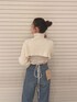 \後ろ姿が可愛い綺麗めカジュアルコーデ/ 【トップス】大人気のバックリボンセットニットワンピースのニットだけを使ったコーデです。(※ニットとワンピースはくっついていませんが、セットうりとなっております。)ワンピース以外にもキャミソールやロンTなどとレイヤードする事で雰囲気沢山変えて楽しめますよ! 【デニム】オーガニックコットンなので、デニム特有の固さは感じず、とにかく柔らかいので履き心地が良いです!ルーズなサイズで足のラインを拾わない作りですが、ハイウエスト設定なのと、ウエスト部分はフィットするのでシルエット綺麗にうつしてくれます◎ トップスにはコンパクトなサイズ感のものを合わせてあげるとバランス良いです。