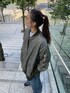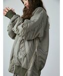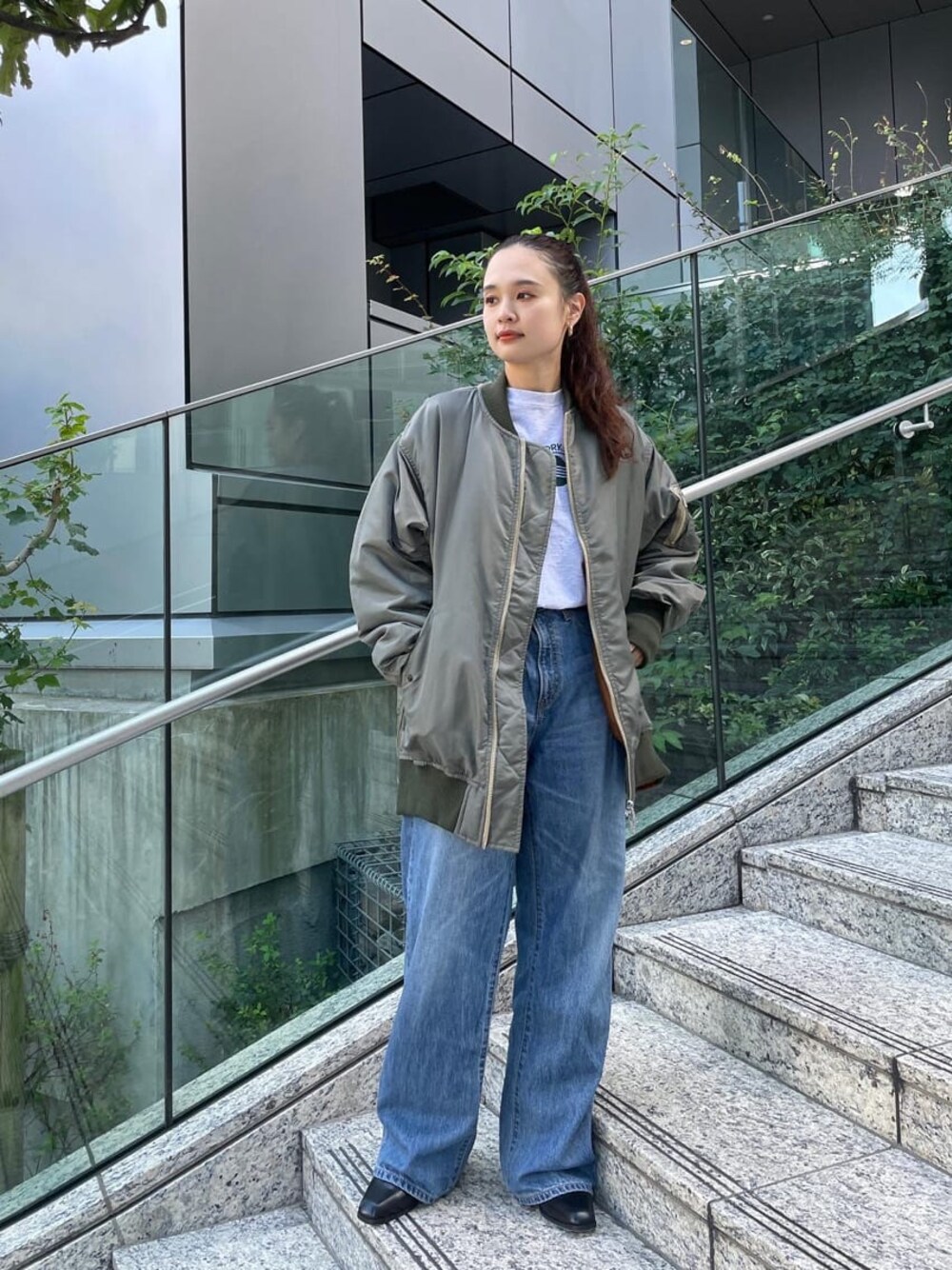 \MA-1でシンプルメンズライクコーデ/【MA-1】かなりルーズなサイズのMA-1。156cmの私ですがヒップはすっぽりと隠れる長さに。サイドにジップがついてるのでサイズ感変えて着ていただけけます。中綿なので暖かさもありますし、ゆったりしている分中にたくさん着込むことも可能です◎ 【ロンtee】ニューヨークシティにある公共施設のロゴモチーフなロンtee。それぞれでロゴが違うので面白さもありつつ、これからの季節はスウェットやニットのインナーとしても活躍します。ヒップ隠れるくらいの長めの丈感です。 【デニム】オーガニックコットンなので、デニム特有の固さは感じず、とにかく柔らかいので履き心地が良いです!ルーズなサイズで足のラインを拾わない作りですが、ハイウエスト設定なのと、ウエスト部分はフィットするのでシルエット綺麗にうつしてくれます◎ トップスにはコンパクトなサイズ感のものを合わせてあげるとバランス良いです