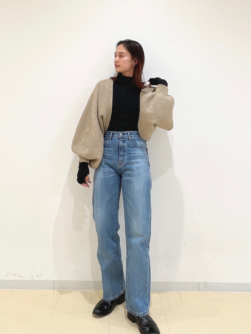#ボレロセットニットワンピース の着回しコーデ! 【ボレロ】#ボレロセットニットワンピースのボレロです。ニットワンピースとセットになっており、このように別々で着回しも可能です◎ボレロ自体は腰くらいの丈感です。袖元にたっぷりゆとりがあり、シルエット可愛くうつしてくれます。 【シアーtee】程よい透け感のシアートップス。体にフィットするサイズ感で首元部分は折り返さずそのまま立ち上がった状態で着用可能です。少しすしゅっと落とすように着てあげるのが◎伸縮性があり一枚でも、レイヤード使いとしても着やすさ抜群です。 【デニム】ungridの定番人気なストレートの形で美脚写りするデニムです。156センチで24インチを履いていますが、丈はフラットシューズで問題なく履いていただけます。ハイウエスト設定×太すぎず細すぎずのストレート形になっているので足のラインは拾いたくないけど綺麗に見せたい方にとってもおすすめのデニムです。