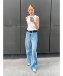 関 侑梨乃(Ungrid)のデニムパンツ「ローウエストオーガニックコットンルーズデニム」を使ったコーディネート