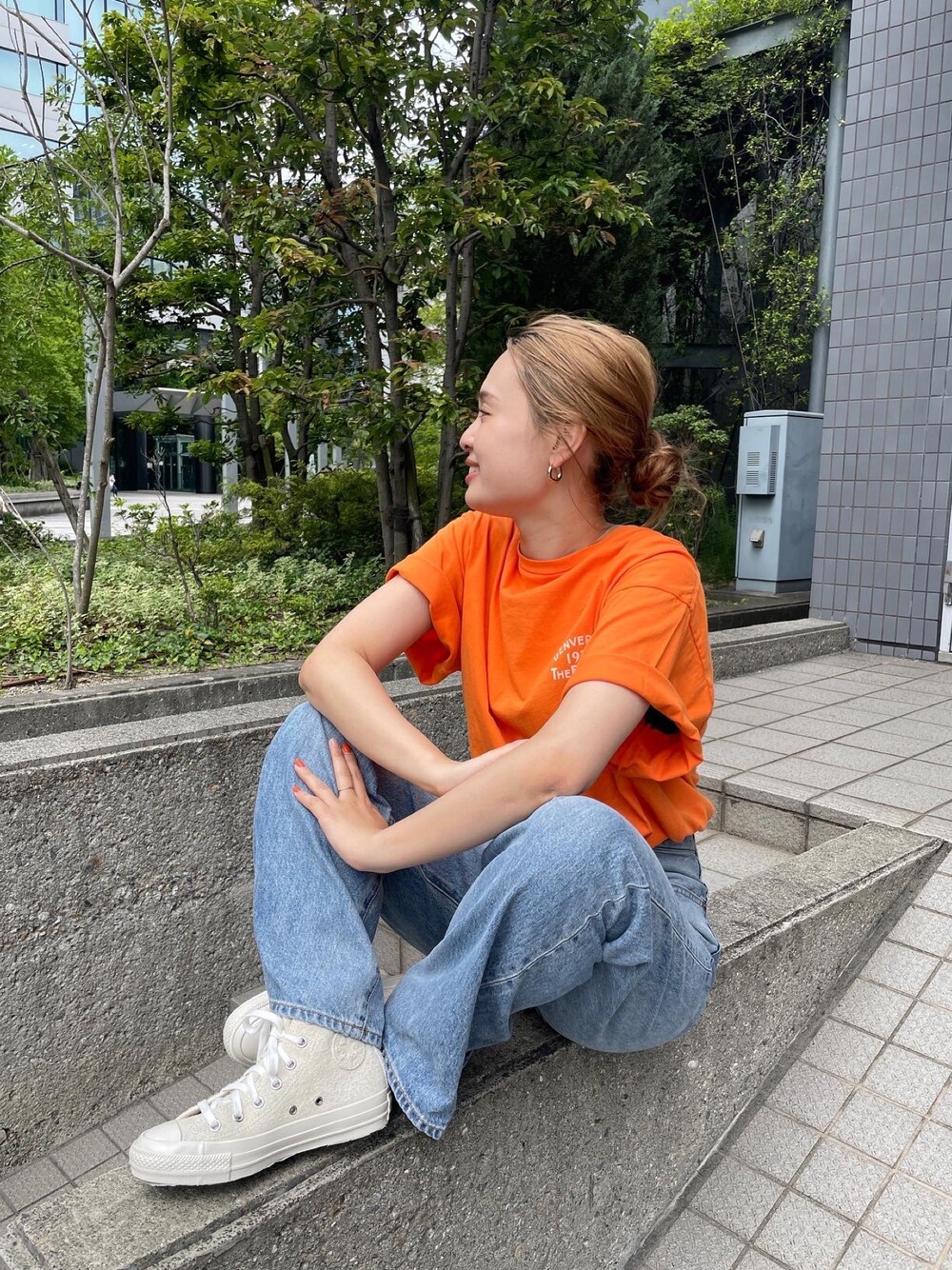 Instagram→@yurino_seki_ tiktok→@_yungrid 【Tシャツ】ヒップは隠れるほどのゆったりシルエットのTシャツなので、まとわりついたりしないから夏も着やすいです! 【デニム】 156cmで24インチを着用しています。フラットシューズやスニーカーだと擦ってしまうので、太めにロールアップするかヒールのある靴と合わせるのがおすすめです!全体的にルーズなサイズ感なので、足のシルエットは拾わずゆるっと着ていただくデニムです。