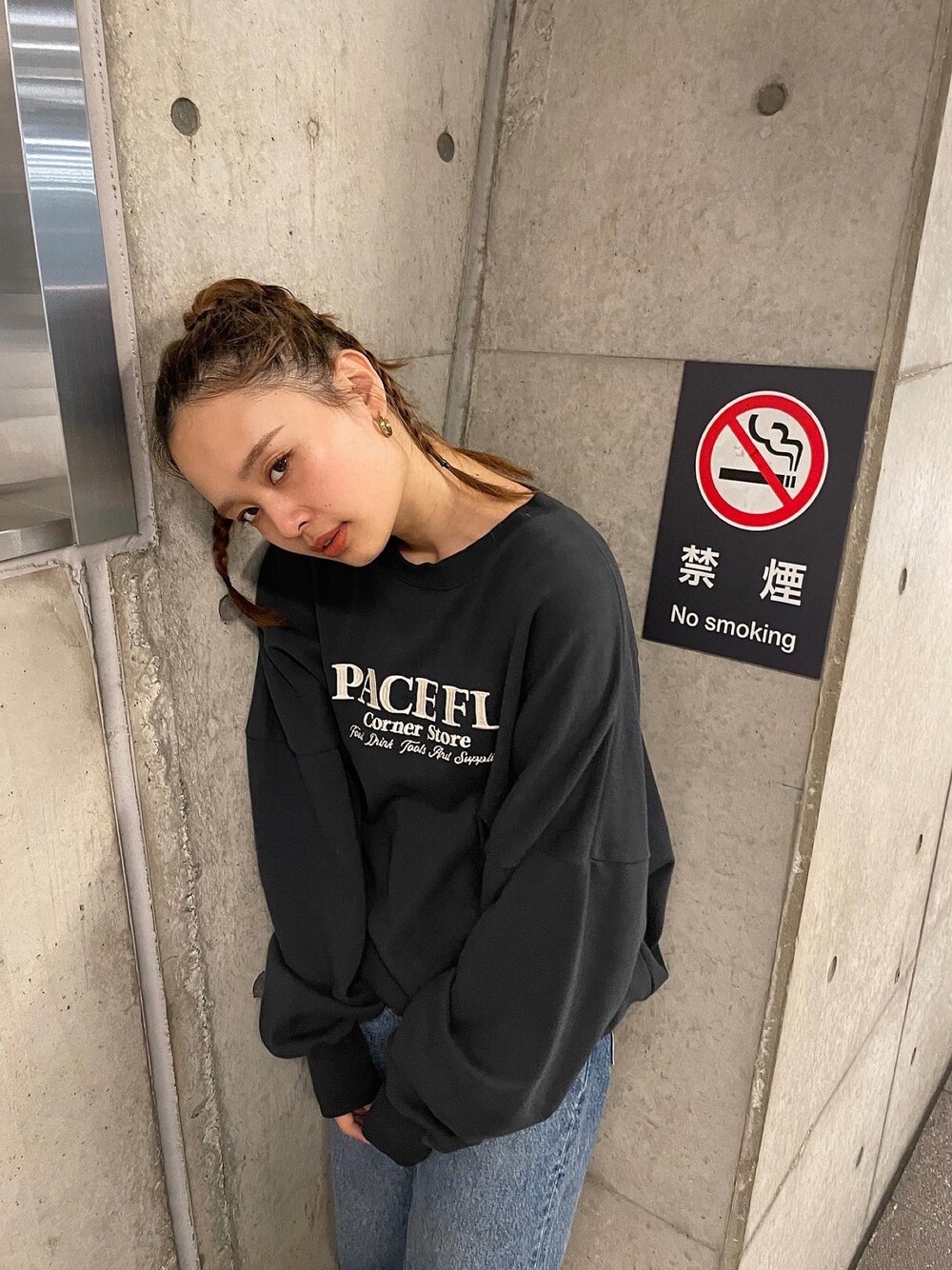 関 侑梨乃(Ungrid)のスウェット「【WEB限定】刺繍ロゴルーズスウェット」を使ったコーディネート