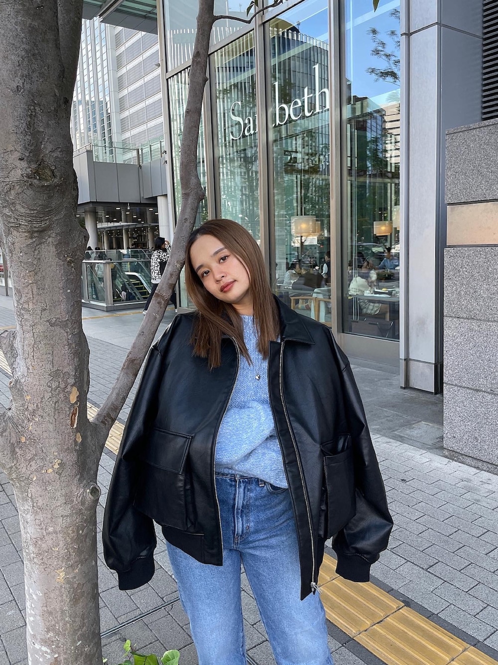 Instagram→@yurino_seki_ tiktok→@_yungrid 【ジャケット】 ヒップかかるくらいで、体のシルエットも全く拾わないルーズなサイズ感のフェイクレザーのブルゾンです! 丸みを帯びたシルエットで中に分厚めのニットやスウェットを着込むことも可能! 【ニット】 形もシンプルで癖が無いので毎年冬にはスタメン入り出来るニットです!ヒップにかかるほどの丈感で身幅もややゆったりしてるのでロンTやシャツとレイヤードがおすすめ◎アウターを着る際にチラッと見えるカラーが目を惹き可愛いですよ◎ 【デニム】 スリムなテーパードシルエットで足首にかけてフィットしていくデニムです!156cm 24インチでフラットシューズで擦ることなく履いていただけます。 小柄さんにもおすすめしたいデニムです!