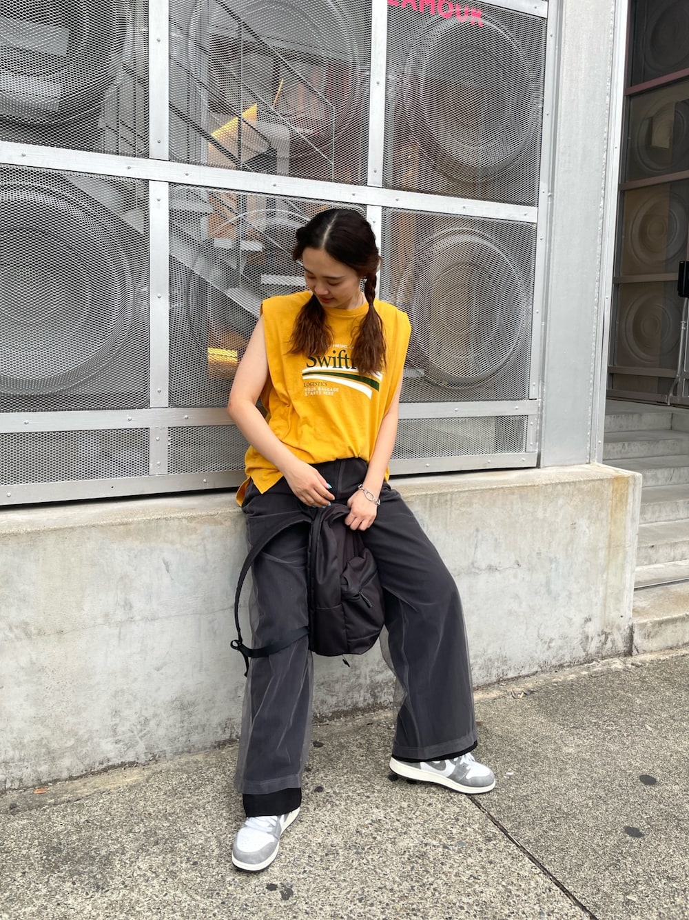 関 侑梨乃(Ungrid)のTシャツ/カットソー「ヴィンテージロゴノースリトップス」を使ったコーディネート