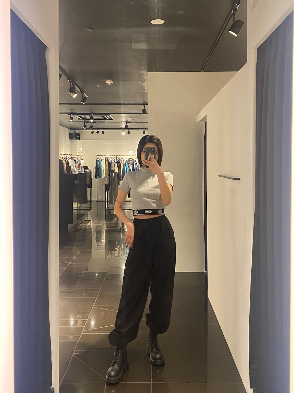 【トップス】EMODAのロゴがポイントのTシャツ👕程よく体にフィットする形なので、ボディラインを拾いにくく上半身を華奢に見せてくれます🫶生地感はしっかり目なので、今からでも着ていただける半袖トップスです😊 【パンツ】今流行りのナイロン素材のパンツ!ウエストゴムなのですごく楽です!裾の絞り具合でシルエット変えて着ていただけます😊ストレスフリーなのに、履くだけで今年らしくなるのでオススメです✨ 【ブーツ】とにかく軽すぎるブーツ!インソールが入っているので、実は10センチ足が盛れます!長時間歩いても足疲れ全くしないのでとても歩きやすいです✨夏でも履いていただけるブーツです👢