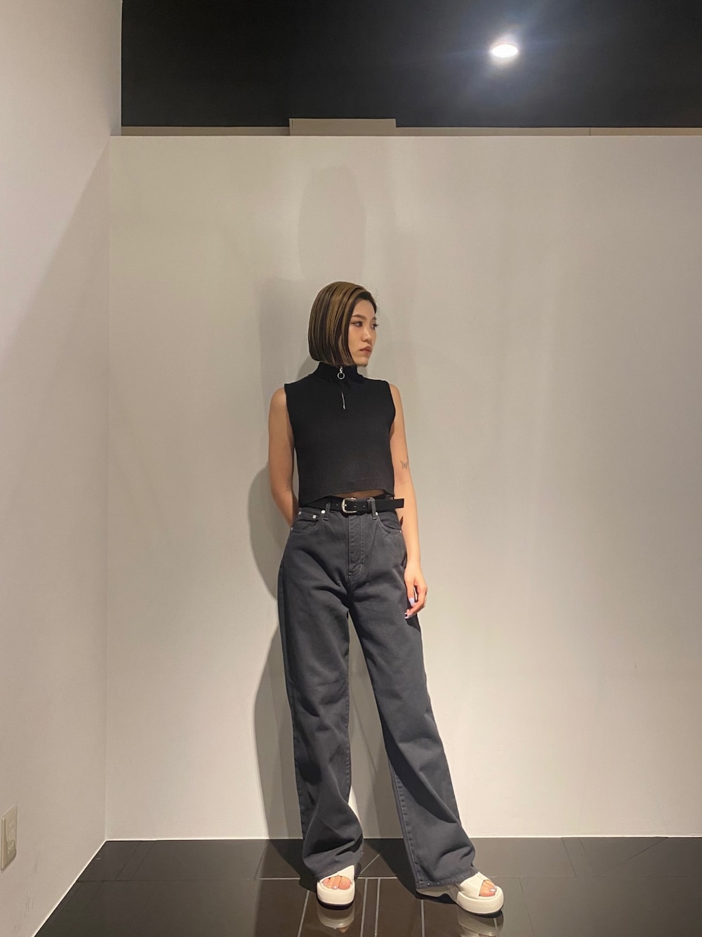 【トップス】去年も人気だったハーフジップのトップス!ジップ開けて着ても、閉じてハイネックにしてもかわいいです🤍生地感があまり体のライン拾いすぎないパイル地の為、ピタッとした服が苦手な方でも着ていただきやすいです!丈感はちょうどおへその下くらいで、ハイウエストと合わせるとお腹が見えないくらいでした☺️ 【デニム】シルエットが綺麗すぎるデニム👖腰回りのラインも程よく拾ってくれる為、ダボっとしすぎないので足をスッキリ見せてくれます!トップスはタイトな物を合わせるとバランス良く合わせて頂けます🫶 【シューズ】ヒール8.5センチの厚底サンダル🩴足の甲が広めで、フィット感ある為すごく歩きやすいです!長時間歩いても足疲れしないので、すごく楽ちんです!!