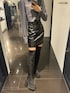 【シャツ】エモダのロゴ付きのシャツ🤍短めの丈になっていて、裾の切りっぱなし感すごく可愛いです😍トップスとして着てもいいですし、羽織りとしても着れますよ!袖が少し長めなのが今年らしくてオススメです🫶 【スカート】インナーショーツ付きなので安心です!ウエストの縦ラインが内側にある為、骨盤を細く見せてくれます!毎年人気のデザインですが、秋らしくレザーが登場しました😍 【ブーツ】毎年大人気のニーハイブーツ👢とにかく足が細く見えます!!ヒールは12.5センチありますが、傾斜がほぼないのですごく歩きやすいです!生地がピタッとするので、足を引き締めて見せてくれます😍