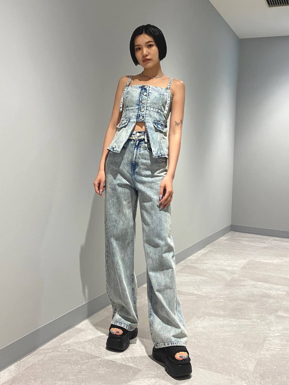 藤川陽(EMODA)のサンダル「コードクロスバルキーサンダル」を使ったコーディネート