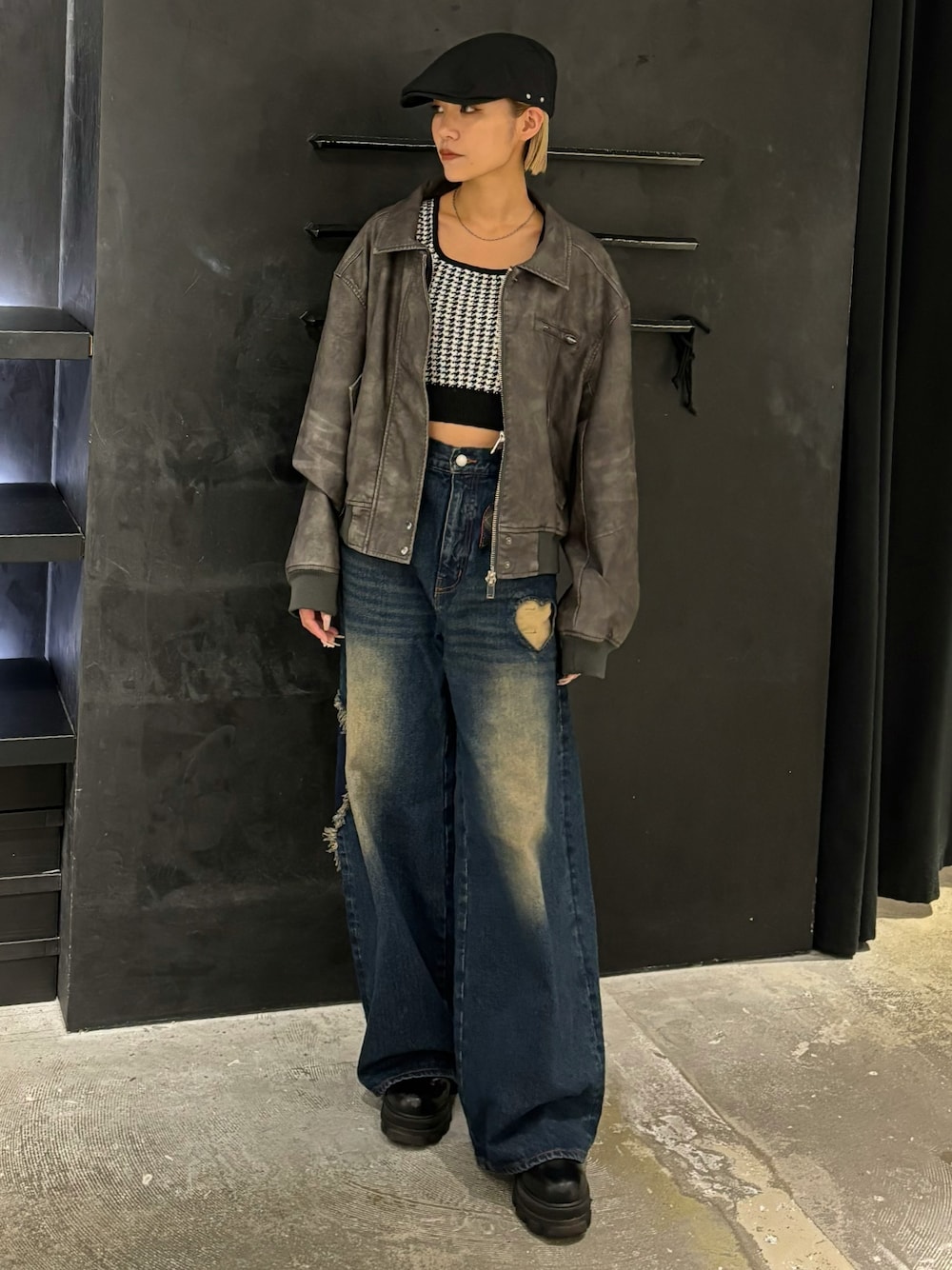 藤川陽(EMODA)のハンチング/ベレー帽「スタッズベルトハンチングキャップ」を使ったコーディネート