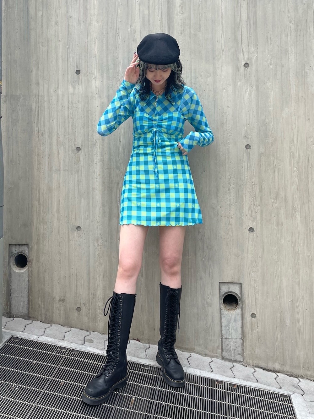 MIYU(jouetie)のワンピース「メッシュチェックキャミワンピース」を使ったコーディネート