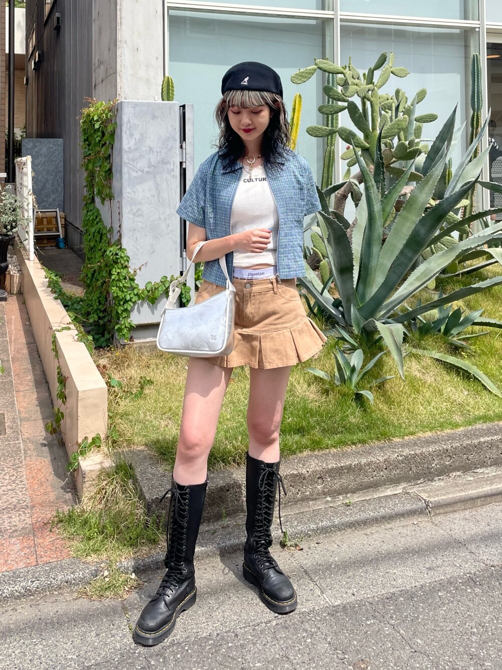 夏のカジュアルガーリースタイル💙 【シャツ】チェックの配色がjouetieならではのコンパクトなシャツ。前がファスナーになっているので羽織でも使えます!コンパクトなサイズ感なので、ワンピースやインナー使いにも◎今季トレンドのミニ丈のボトムスと合わせるのがオススメです! 【キャミソール】レースがガーリーさを出してくれるキャミソール。胸元のロゴもポイントです!パットが付いていて1枚で着れるので、持っておくと便利なアイテム! 【スカパン】トレンドのプリーツスカパン。ローウエストのスカパンは00'sムード抜群です!丈感は短めですが、スカパンなので1枚で履けちゃいます!コンパクトなサイズ感のトップスと合わせるのがおすすめ♥ 【バッグ】アシンメトリーなデザインが可愛いバッグ。生地配色がjouetieならではです!小さめサイズにマチが付いているので容量も◎