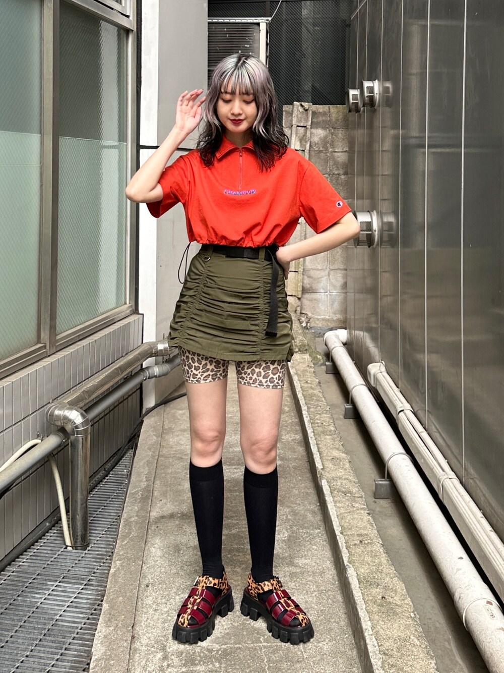 スポーティコーデ🏁 【トップス】Championコラボのクロップド丈プルオーバー。ハーフZIPなので衿も2wayで使えます!裾のドローコードで調節できるのも嬉しいポイント。カラーも豊富なので色んなスタイルに合わせて頂けます♥ 【スカート】ギャザーがかわいいミニスカート。セットのベルトがミリタリー感をプラスしてくれます!ウエストはゴムなので履き心地も◎ロングブーツ合わせてがトレンドでオススメです♥ 【サンダル】ボリュームソールがかわいいサンダル。軽いので長時間履いてても◎jouetieならではのレオパード柄がおすすめです!トレンドのハイソックス合わせもかわいい!