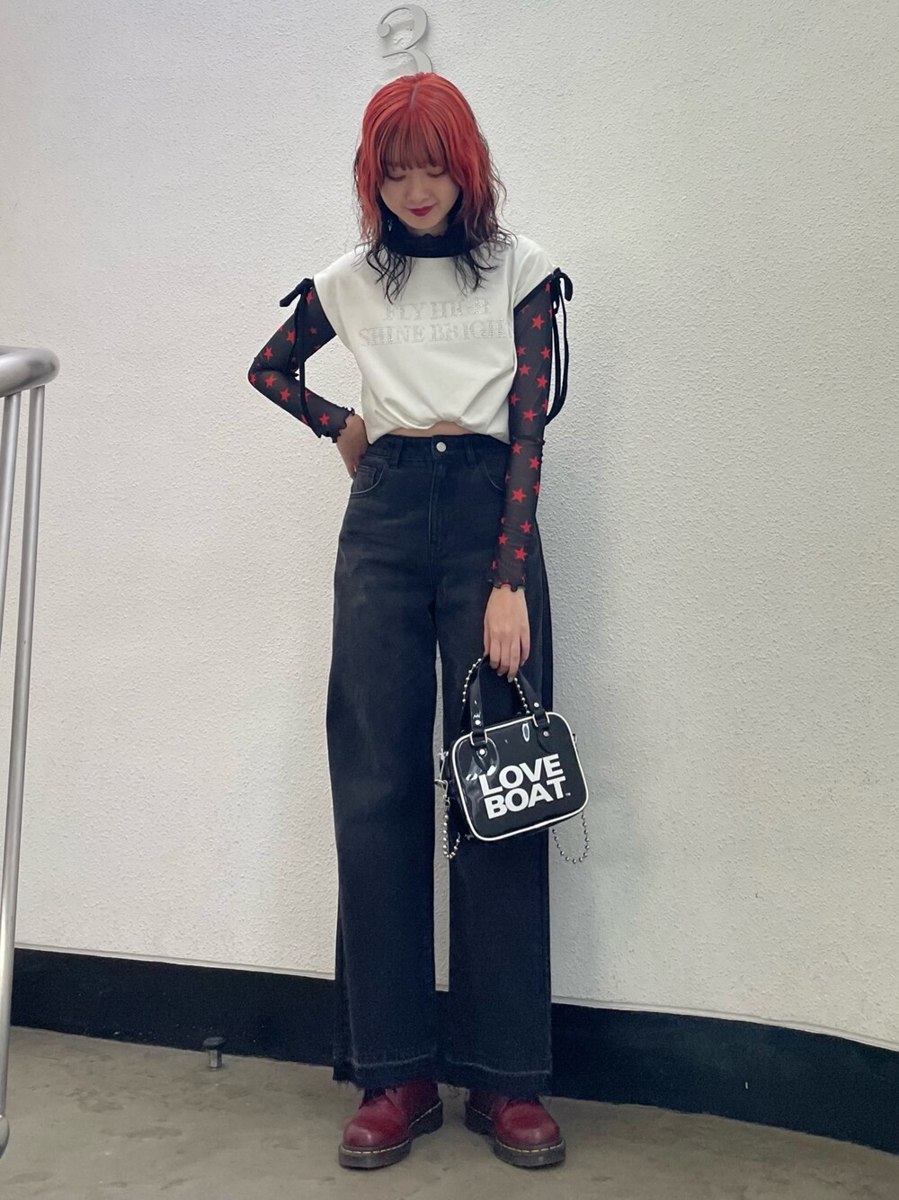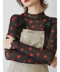 レトロカジュアルコーデ🏁 【Tシャツ】袖のリボンとスタッズロゴがかわいいトップス。jouetie定番のトリムTシャツはデニムとの相性抜群◎袖がないデザインなのでインナーをレイヤードするコーデがおすすめです! 【トップス】今季トレンドのスターモチーフがかわいいフィットトップス。透けている素材なのでトップスとしての着用はもちろん、インナーとして着るのもかわいいです★いつものコーデに合わせるだけでレトロになるアイテムです! 【デニム】ベーシックなデザインでトップスを選ばない万能アイテム。オールシーズン着まわせるのも嬉しいポイント! 【バッグ】LOVE BOATとのコラボレーションアイテム。ボールチェーンでらjouetieらしさも。00'sムードたっぷりのロゴはいつものコーデに合わせるだけでポイントになります♥