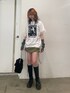 カジュアルスタイル⭐️ 【Tシャツ】jouetie定番のレースがドッキングされたTシャツ。ロックなグランジプリントが他にはないデザインになっています!長すぎない丈感なのでボトムにインしやすいのも嬉しいポイント!カラー配色もかわいいです♥ 【スカート】トレンドのミリタリーデザインのスカート。サイドのギャザーは調節できるのでお好きな丈感で履けます!ウエストはゴムなので履きやすさも◎ 【バッグ】秋冬コーデの主役になるファーバッグ。大きめのサイズ感で物もたくさん入るのも嬉しいポイント!チェーンは斜めがけ、手持ちどちらでも使える2WAY仕様になっています! 【アームウォーマー】去年に引き続きトレンドのアームウォーマー。いつものコーデにプラスするだけで、簡単にストリートコーデが楽しめます♥他にはないボーダーカラーがポイント。