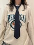 カジュアルガーリーコーデ🐎 【プルオーバー】ヴィンテージライクなプルオーバー。ホースグラフィックの刺繍がかわいいです♥メンズライクなサイズ感なのでミニボトムと合わせてチュニック風に着るのも◎カラーも豊富なのが嬉しいポイント! 【スカート】毎回大好評のフリルティアードスカート。カジュアルなTシャツと合わせるだけで、ミックススタイルが楽しめます♥ウエストはゴムなので履き心地も抜群◎ 【ネクタイ】トレンドのネクタイ。シャツやプルオーバーに合わせるだけでトレンドスタイルになります! 【バッグ】Y2Kのデザインが可愛いバッグ。大きめのサイズ感なので物も沢山入る優秀アイテム。レザー素材でどんなコーデにも合わせやすいです♥