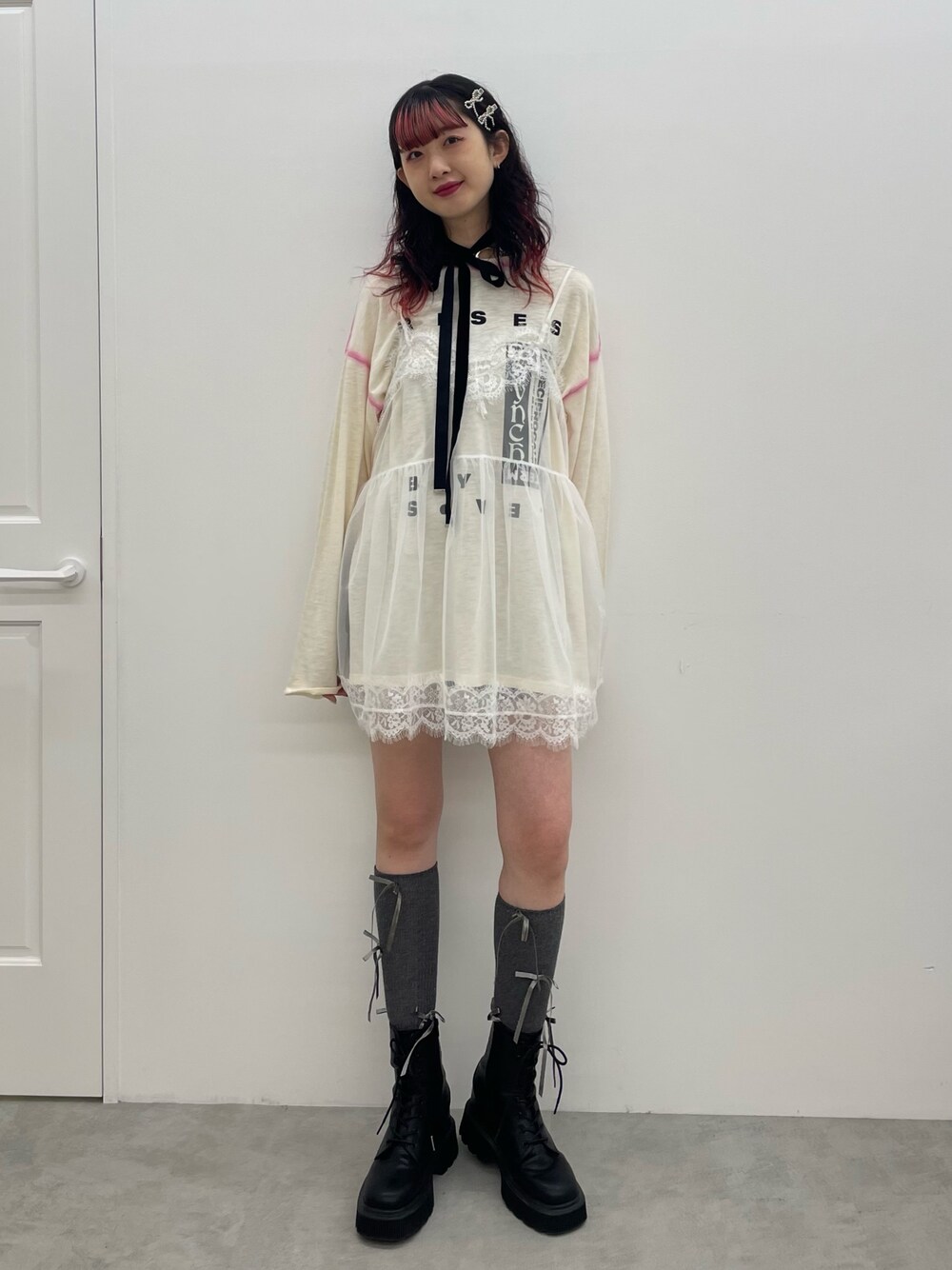 MIYU(jouetie)のTシャツ/カットソー「ランジェリーレイヤードチュニックTシャツ」を使ったコーディネート