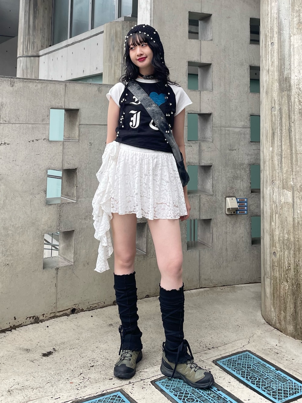 カジュアルガーリースタイル️🩵 【Tシャツ】ラグランデザインが可愛いTシャツ。コンパクトなデザインですどんなボトムスとも相性抜群○jouetieならではの配色がかわいいです! 【スカート】今季トレンドのレーススカート。ドレープデザインがポイントです!ビッグTシャツ合わせでチラ見せするのもおすすめ︎︎︎︎❤︎