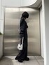 オールブラックコーデ🖤【TOPS】ショート丈のVネックニット。168cmでウエストくびれくらいの丈感でした!身頃が短く袖が長めなのでより一層脚長効果のあるデザインです🙆♀️【BOTTOM】ハイウエストのワイドパンツ。Sサイズ着用で足首くらいの丈感でした!サラッとした生地感で履き心地◎でした🫶【SHOES】定番の厚底ブーツ。ヒールが太めで高低差があまり無いので本当に歩きやすいです!私は幅広で24.5〜25cmですがLサイズでピッタリでした!