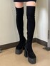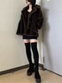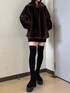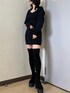 ファーコートでキレイめモードコーデ🌙【OUTER】今年も大人気のファーコート。チクチクせず着心地の良いデザインで、168cmの私でもお尻が隠れるミディ丈になっています!オーバーサイズなので分厚めのニットでも着やすいです🙆♀️【ONEPIECE】シルエットが綺麗なミニワンピース。168cmでお尻下までしっかり隠れる丈感なので、1枚でも安心して着用できました!袖がふわっとしており身頃はピタッとしているので、メリハリのあるシルエットに🫶【SHOES】大人気のニーハイブーツ。全体的に程よい着圧感があるので、脚を細く見せてくれます!私は24.5~ 25cmで幅広ですがLサイズピッタリでした👢