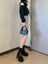 アニマル柄コーデ🖤 【TOPS】ショルダーカットトップス。168cmでお尻にかかるくらいの丈感でした!ショルダーカットになっていますが下着は隠れます🙆♀️生地がサラッとしており着心地◎です! 【BOTTOM】ハイウエストミニスカート。Mサイズ着用で、インナーショートパンツ付きなので高身長さんでも安心してご着用頂けます🫶両サイドポケット付きです! 【SHOES】定番の厚底ブーツ。ヒールが太めで安定感があります!私は幅広で24.5〜25cmですがLサイズでピッタリでした👢 【BAG】ミニショルダーバッグ。EMODAオリジナルロゴがポイントです💡小さめサイズなので、サブバッグやコーデのアクセントとしてもオススメです! 【NECKLACE】薔薇がワンポイントの2連ネックレスです。