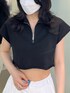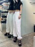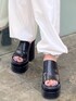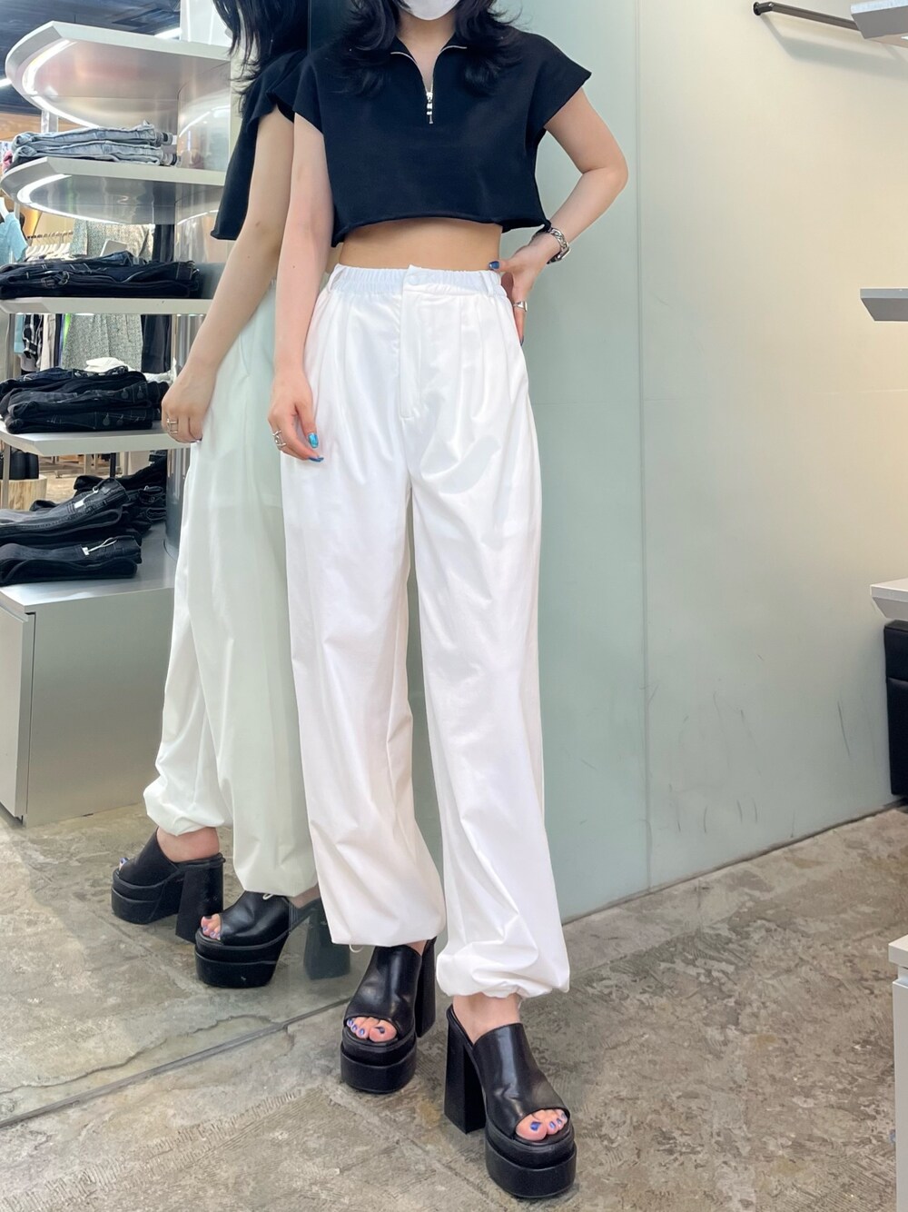 モノトーンコーデ🖤 【TOPS】 ハーフジップのショートトップス。168cmで肋骨くらいのショート丈です!ノースリーブですが二の腕が隠れるので着痩せ効果◎! 【BOTTOM】 シンプルなナイロンパンツ。丈感は足首下くらいまでのルーズな丈感ですが、足首部分が絞れるのでスッキリとした印象に💡 【SHOES】 シンプルな厚底サンダル。私は24.5〜25cmの幅広ですがLサイズピッタリでした!ストラップが無いので脱ぎ履き楽ちんです🧡