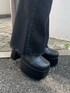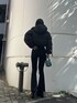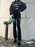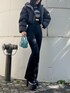 冬のブラックコーデ🖤 【OUTER】 ショート丈のダウンジャケット。168cmで腰くらいの丈感でした!袖や脇周りに余裕があるので分厚いニットもしっかり着込めます🙆♀️ 【TOPS】 クロップド丈ニット。肋骨くらいの短さです🧶 【BOTTOM】 ハイウエストのフレアデニム。Sサイズで踵くらいの丈感です! 【SHOES】 定番の厚底ショートブーツ。私は24.5〜25cmの幅広でLサイズピッタリでした👢 【BAG】 スクエアバッグ。長財布が入るくらいの大きさです!
