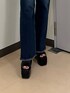 カジュアルコーデ🌞 【TOPS】 フロントZIPトップス。168cmでウエストくびれくらいのショート丈です! 【BOTTOM】 ハイウエストデニム👖Sサイズ着用で踵くらいの丈感でした!全体的にストレッチ性があり履きやすいです🙆♀️ 【SHOES】 厚底サンダル。私は24.5〜25cmの幅広ですが、Lサイズでピッタリでした!