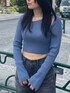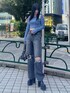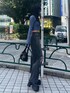 カジュアルコーデ💙 【TOPS】 首周りのデザインがかわいいショートニット。168cmでウエストくびれくらいの丈感です!伸縮性があり着心地も⭕️✨ 【BOTTOM】 ワイドデニム。Mサイズ着用で、写真のような踵が隠れる丈感でした! 【SHOES】 厚底ブーツ。私は24.5〜25cmの幅広ですが、Lサイズでピッタリです!🙆🏻♀️ 【BAG】 長財布が入るくらいのサイズ感です!マチが広めで使いやすいです🫶🏻