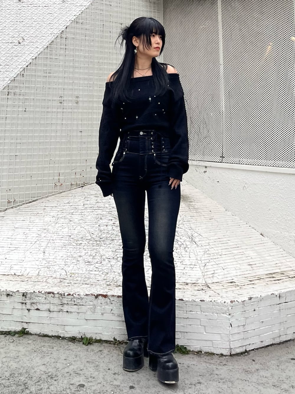 丸山幾世子(EMODA)のニット/セーター「スパークビジューニット」を使ったコーディネート