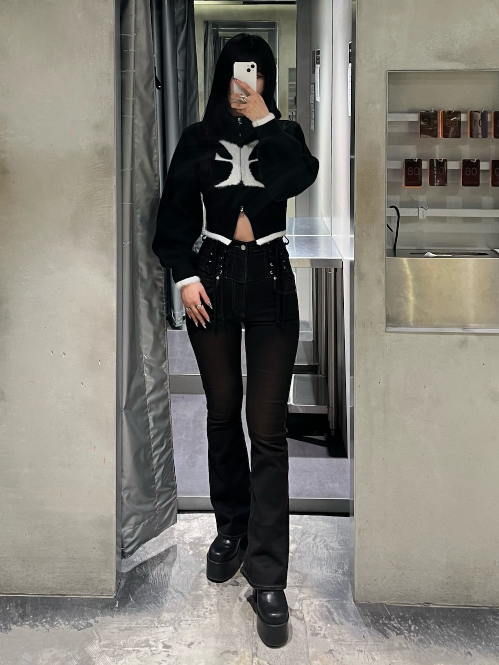 【TOPS】 168cmで腰くらいの丈感です!大きめのリボン柄がポイントです🎀分厚すぎない生地で着心地も◎! 【BOTTOM】 XSサイズ着用で写真のような踵くらいの丈感です👖ハイウエストなので脚長効果抜群です✨ 【SHOES】 私は24.5〜25cmの幅広ですが、Lサイズピッタリでした!厚底ですが軽いので長時間履いても疲れにくいです💫