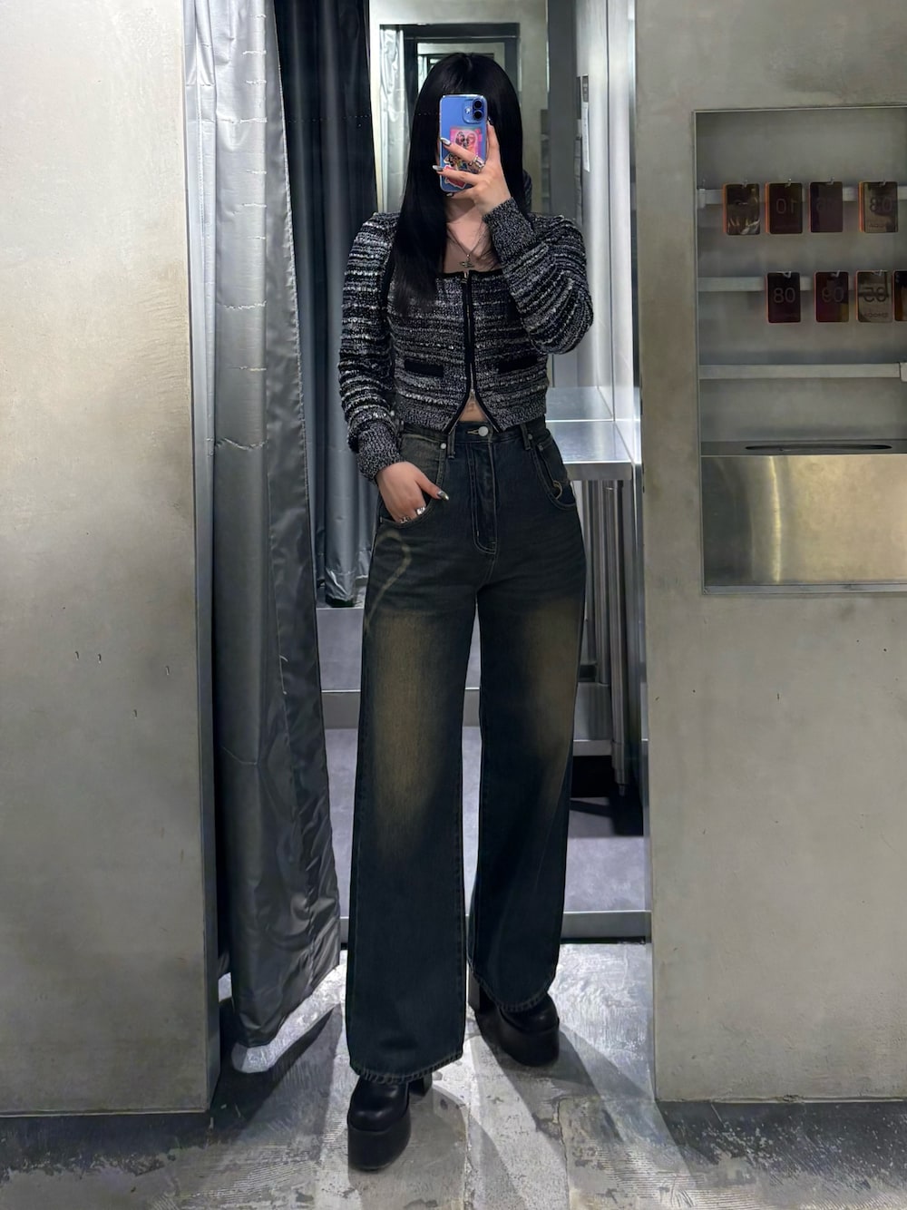 丸山幾世子(EMODA)のニット/セーター「ツイードクロップジップニット」を使ったコーディネート