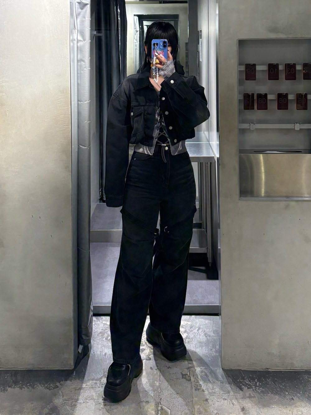 【TOPS】 168cmでウエストが隠れるくらいの丈感です!リブ素材で伸縮性があるので着やすいですよ🙆🏻♀️ 【OUTER】 写真のようなショート丈で、ウエストくびれくらいの丈感です!ウエストゴムになっているので、オーバーサイズですがメリハリのあるシルエットになります✨ 【BOTTOM】 Mサイズ着用で写真のような踵くらいの丈感です👖ベルト部分は調節できるので、お好みのワイド感で着用頂けます! 【SHOES】 私は24.5〜25cmの幅広でLサイズピッタリでした!厚底ですが軽いので長時間でも歩きやすいです👟