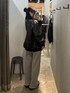 【OUTER】 毎年人気のレザーブルゾン🖤サイズごとに丈感が大きく変わり、Mサイズは168cmの私でもお尻が隠れる丈感でした!オーバーサイズで中はかなり着込めるので気温に合わせて着回し◎! 【BOTTOM】 168cmでローライズ着用で踵くらいの丈感です!スリット位置が高めなので足が長く見えます✨ 【SHOES】 私は24.5-25cmの幅広ですがLサイズでピッタリでした!厚底ですがかなり軽いので長時間でも歩きやすいです🫶🏻