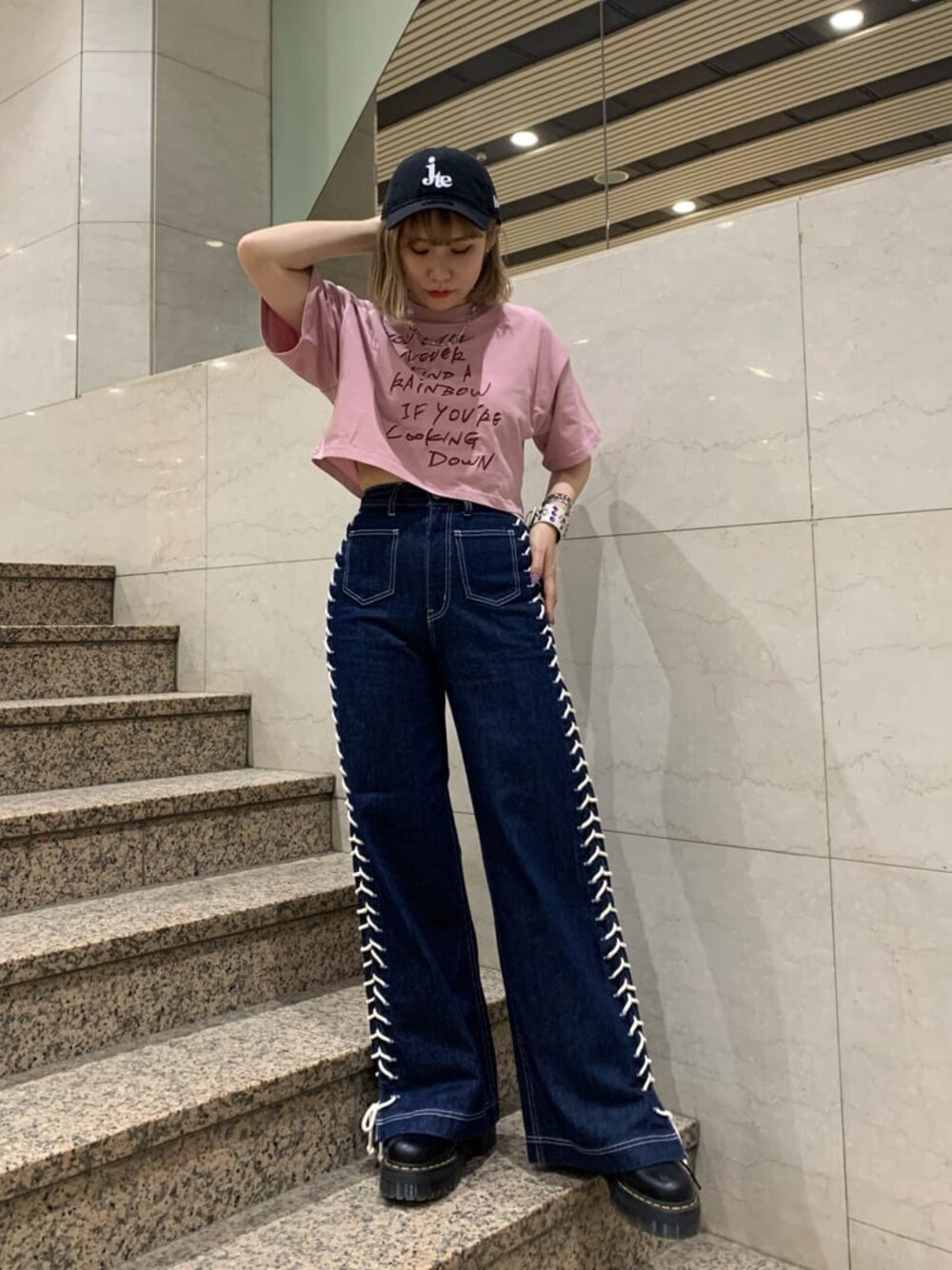 大人気だったレースアップデニムがパワーアップして登場です♡綺麗なワイドシルエットで脚長効果抜群!サイドのレースアップで着痩せ効果も◎ハイウエストなので、今回クロップド丈のTシャツと合わせてバランス重視しました!158センチSサイズ着用で丈感ぴったしです!