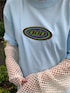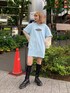 ddpコラボTシャツはゆったりとしたオーバーサイズのお作りで158cmの身長ですっぽりお尻が隠れる丈感となっております!サイズ感を活かしてワンピース風に着用しました!♡フロントにはロゴワッペンのワンポイント、バックにはキャッチーなオリジナルグラフィックが施されており一枚でインパクトのあるデザインとなっております♪
