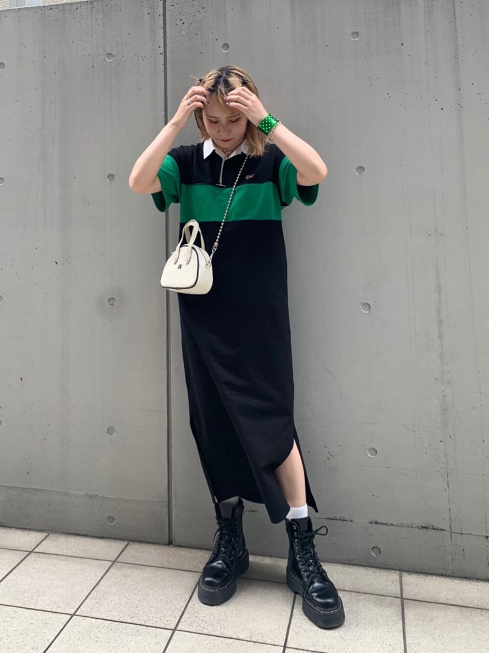 1枚でキマるゆるっとしたサイズ感のラガーワンピ❤︎ビビットな配色と胸元のロゴがポイントです☆リラックス感があるゆったりとしたシルエットのワンピースですが、裾部分にさりげなくサイドスリットが施されておりラフになりすぎないデザインです! 持っているだけでこなれ感でるミニマムボストンバッグはカラーによって生地感が異なるのかポイント!アイボリーはキャンバス生地でお作りしておりどんなコーデにも馴染む!使い勝手◎のバッグです。