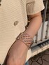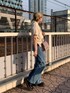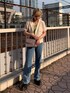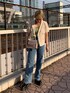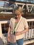 グリーンをアクセントにしたカジュアルコーデ☆【ブラウス】ダブルボタンのデザインがアクセントなブラウスを羽織で着用しました!ポコポコとした生地がポイントで軽いお作りの為夏場の羽織に最適なアイテムです◎二の腕カバーも期待できる1枚♡158センチで腰部分までしっかり隠れる丈感です。【キャミソール】ジュエティらしいチェッカー柄がポイントのサマーニットキャミ♡肩紐の長さも調節できるのが魅力☆体に程よくフィットする為着心地も抜群です。 【パンツ】バックZIPがポイントのデニムは開ければフレアシルエット、閉めればストレートシルエットと1着で2WAYの着こなしが可能な優秀アイテム♡ 今回はゆったりフレアで着用しました!158センチで丈感ジャストで着用していして頂けます!