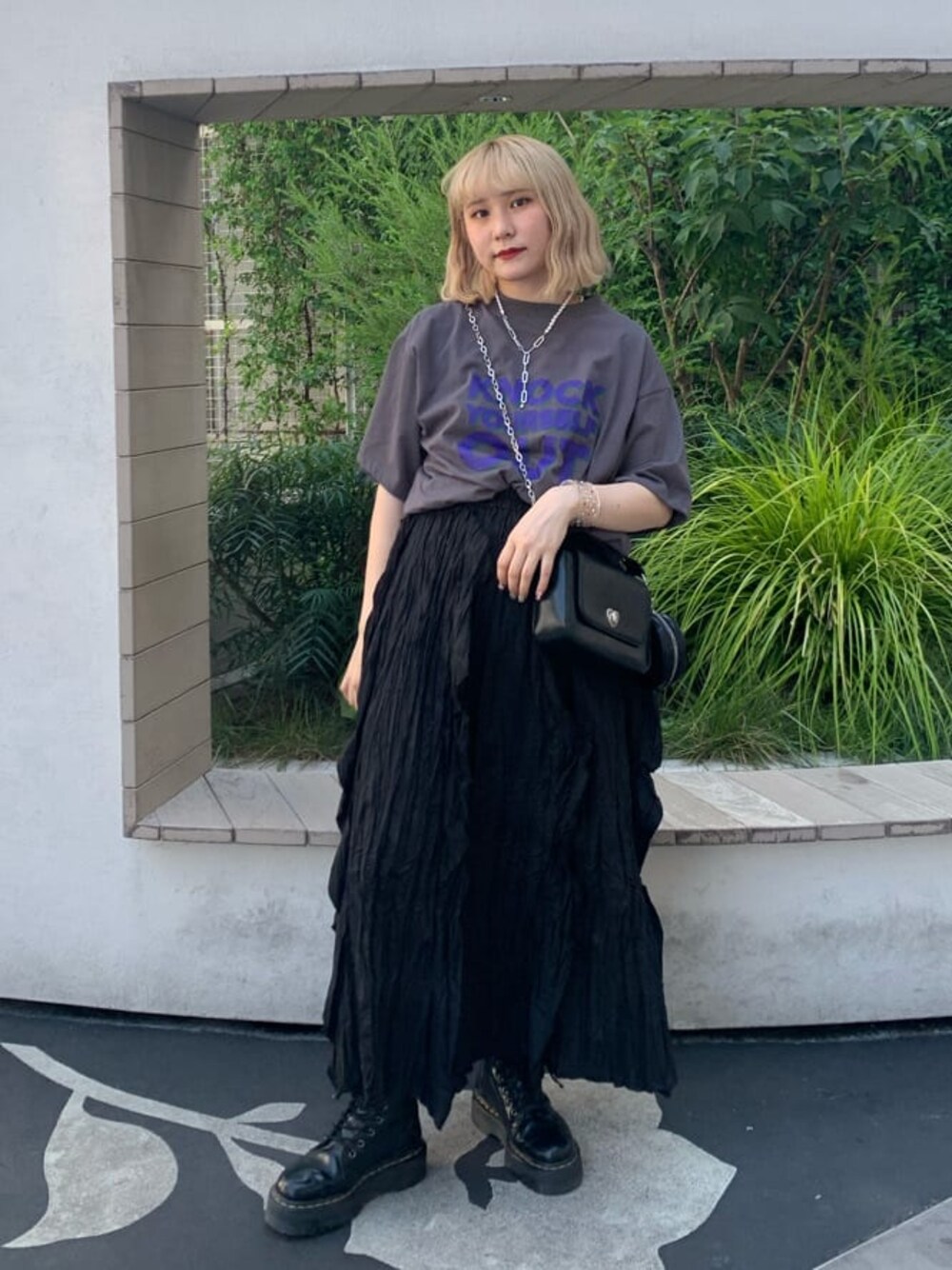 1枚で決まるお得なセットアップ❤︎ グランジTとフリルスカートで簡単にjouetie らしいMIXコーデが完成するセットアップアイテム! セットでは勿論ですが別々で着用しても可愛い着回し抜群のアイテムです!Tシャツはオーバーサイズでゆったりと、スカートはウエストゴムで楽ちんです☆