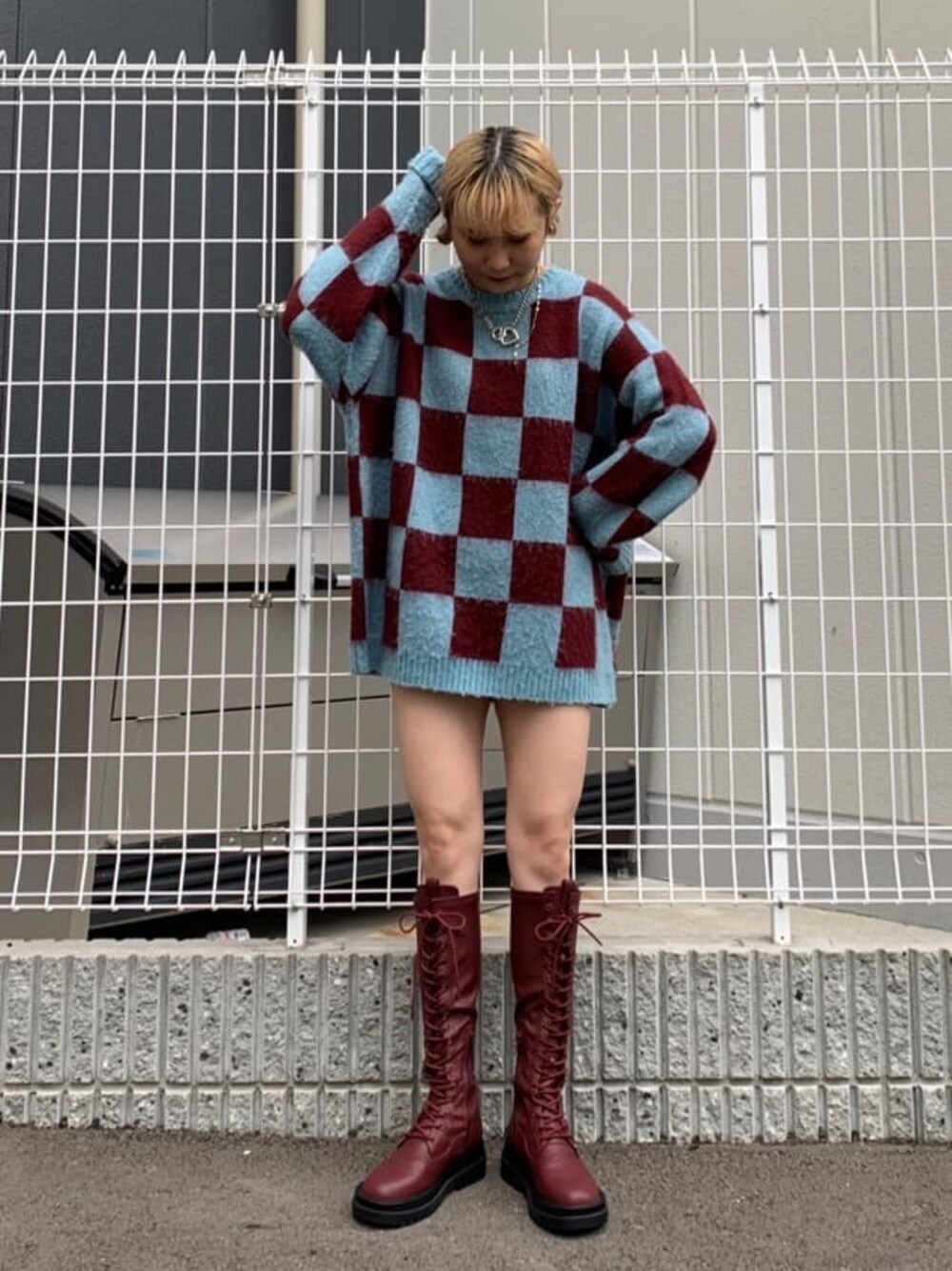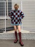 【ニット】jouetie らしいチェッカー柄が存在感抜群のジャガードニット!私の身長でお尻すっぽり隠れる長さでルーズな丈感です。アクリルニットなので暖かさも抜群◎今回はロングブーツ合わせでスタイリング組みましたが、ベーシックなデニムやスカパン合わせもオススメです!【ブーツ】ボルドーはストレッチ感のある合皮で軽く履き心地◎jouetieのブーツは長時間歩いても疲れません!♪シルエットが綺麗で程よくピタッとしておりスタイリングを引き締めてくれます♡