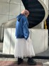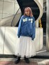 【トップス】オーバーサイズのフーディーはお尻すっぽり隠れるカジュアルなデザイン♡フロントのサテンロゴがjouetieらしいポイント◎【スカート 】デニムとチュールがドッキングされたスカートはリメイクライクで他と被らないデザイン◎広がりすぎず着膨れした感じに見えずらい絶妙なチュールの広がり具合がポイントです!