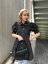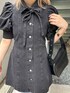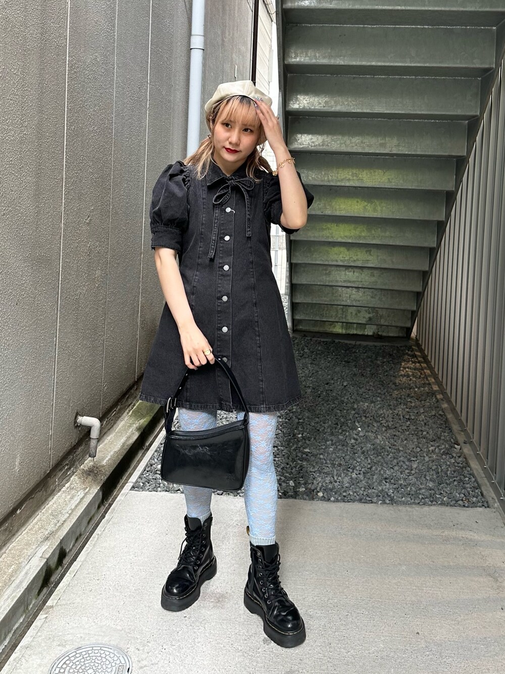 パワーショルダーがポイントのデニムワンピース♡二の腕痩せ効果期待大です◎デニム生地が柔らかく着用しやすいです!背中が肌見せできる仕様になっているので、インナー合わせがオススメです!