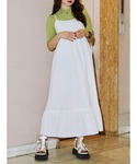 キャミワンピとシアートップスがセットのアイテム♡どちらも今の時期着回しで沢山使えます!ワンピースは後ろがレースアップデザインになっており、リボンで長さ調節可能です◎ポコポコした生地で軽い着心地なので夏場も涼しく着用して頂けます!